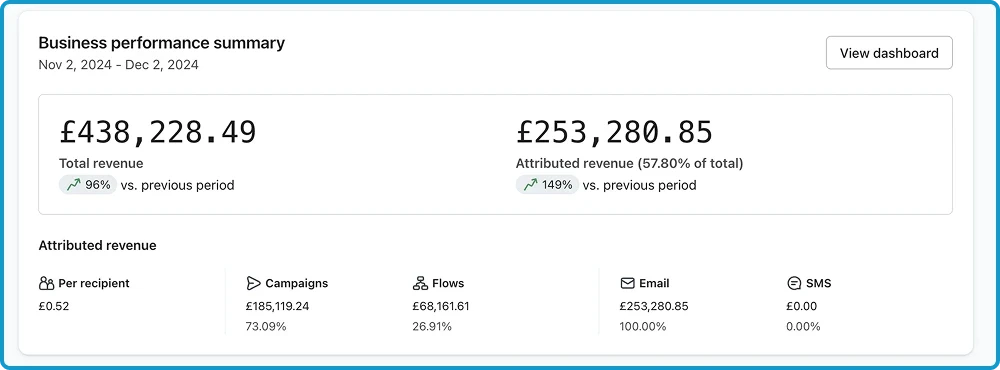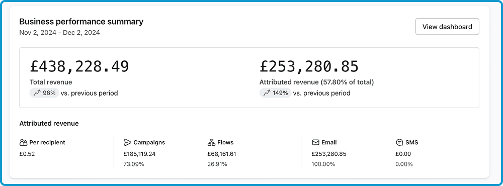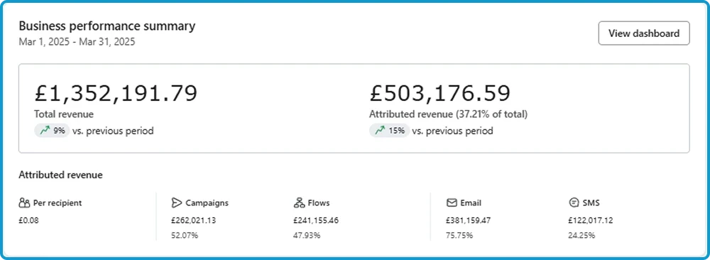Made them an extra £100,000 just after 30 days of setting up 9 flows and sending 6 campaigns to their list