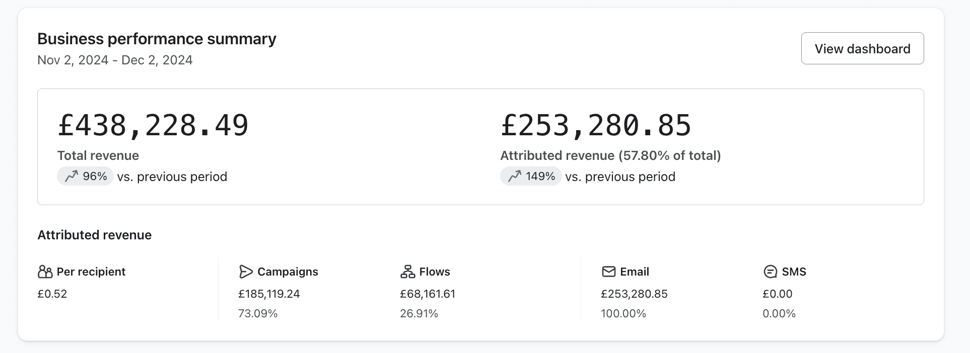 After setting up all Black Friday Cyber Monday Flows and Campaigns for this brand, we generated £253k which is 57.80% of their revenue
