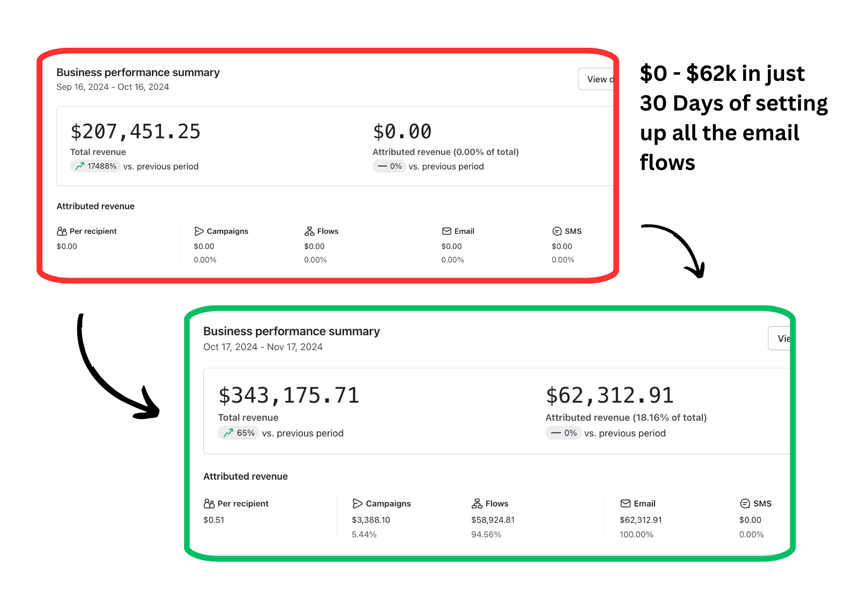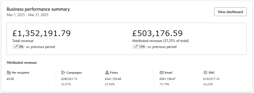 Made them an extra £100,000 just after 30 days of setting up 9 flows and sending 6 campaigns to their list